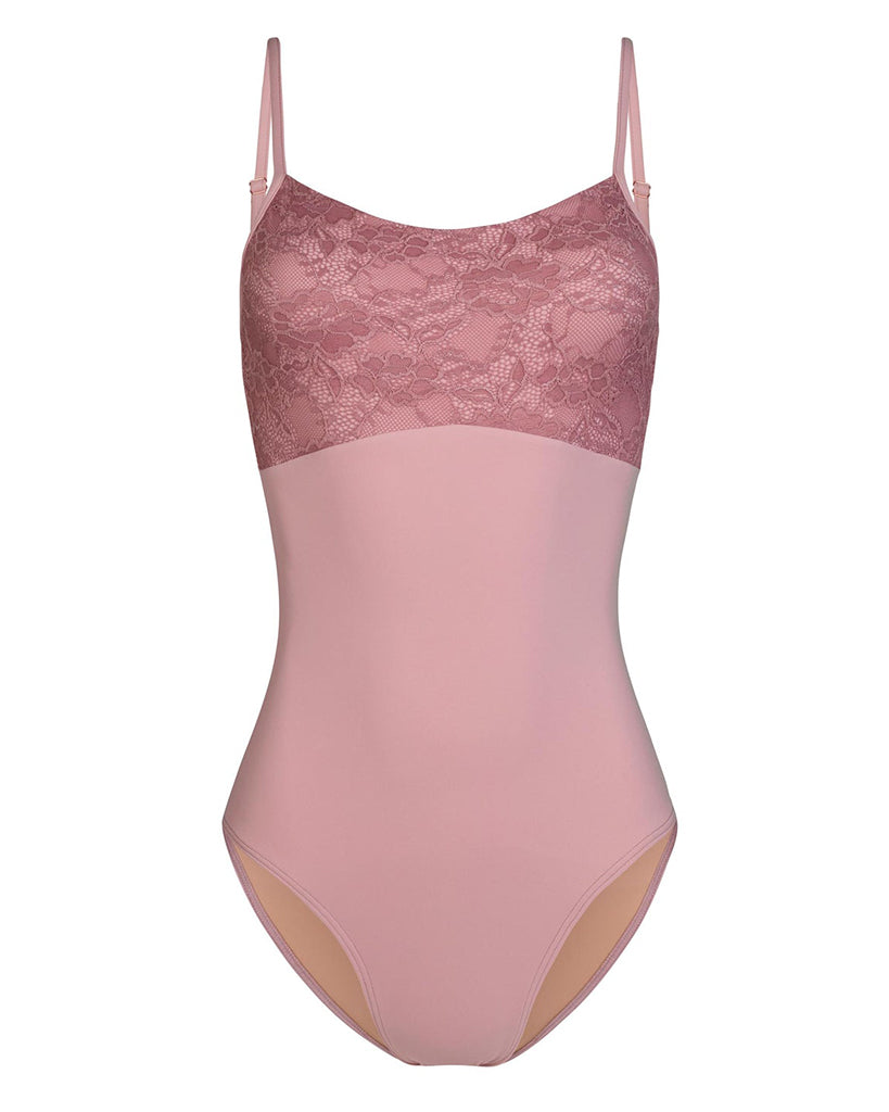Mara Dancewear Chloe Scoop Neck Floral Lace Adjustable Strap Leotard - Rose