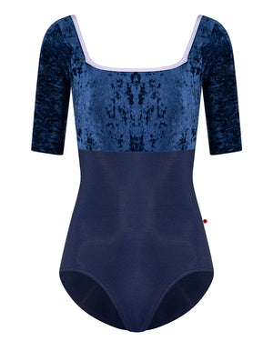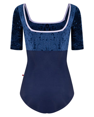 Yumiko Marieke with Crushed Velvet Square Neck 3/4 Sleeve Leotard - Womens - Dark Blue / Poem